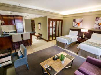 Каждый из 106 люксов оформлен в современном стиле и оснащен телевизором с плоским экраном и кондиционером. Полностью оборудованная кухня укомплектована микроволновой печью. В ванной комнате установлена ванна или душ. Из окон открывается вид на город.
