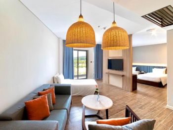 Никому не рекомендую. Бронировали 3х комнатные апартаменты, когда к ним приехали, они сказали-сори, у нас сбой, не можем вас заселить в ваш номер, можем предложить 2 комнаты в 4х спальной вилле, где вы будете жить с другими людьми, но доплатите нам еще 100$ ??‍♀️ Благо, мы нашли, куда уехать, в самый пик сезона, где все занято. Это точно не отель 5⭐️. На ресепшен познакомились с людьми, они бронировали через туроператора виллу, но заселили из только на 3 день. Шаражка, а не отель)