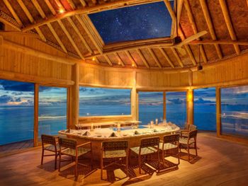Пятизвездочный отель Soneva Fushi By Six Senses предлагает вам забыть обо всех проблемах и насладиться потрясающим отдыхом на берегу Индийского океана. Для вас будет работать сразу 6 ресторанов и баров, где по утрам сервируется изысканный завтрак, а на обед и ужин вам будут подавать блюда восточной, европейской и национальной кухни, основанной на морепродуктах и выращенных здесь же на острове овощах и фруктах. По желанию вы можете заказать еду в номер или пригласить повара, чтобы он лично приготовил вам обед или ужин.