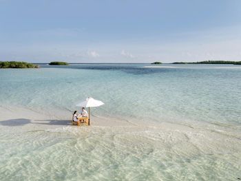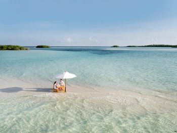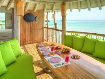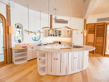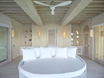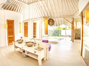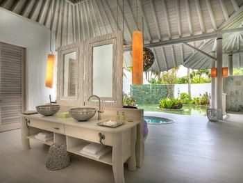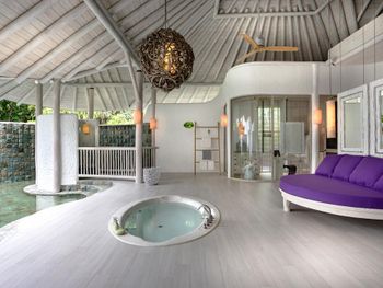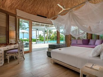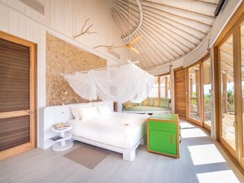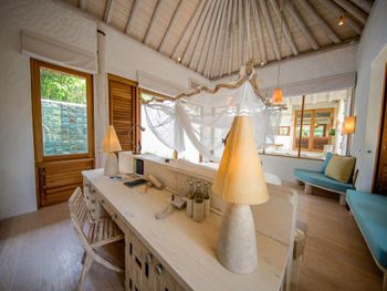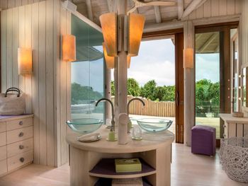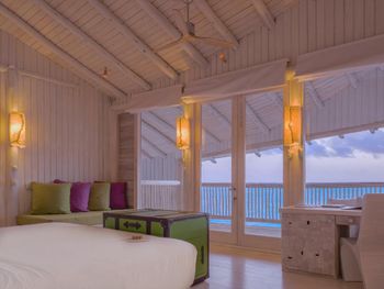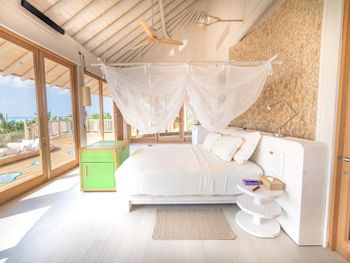 Все красивые виллы, построенные из экологичных материалов, состоят из просторной главной спальни и смежной спальной зоны для детей. На каждой вилле имеются ванная комната с ванной и душем на открытом воздухе и выход к лагуне. Кроме того, в распоряжении гостей мини-бар с эспрессо-машиной, собственный винный погреб, открытая терраса и зона для отдыха с шезлонгами и прямым выходом к лагуне.