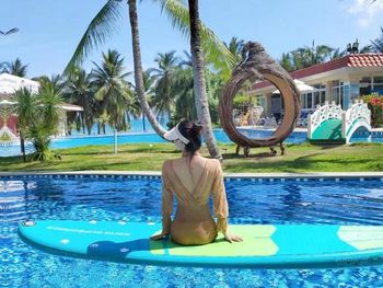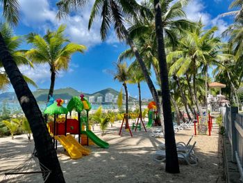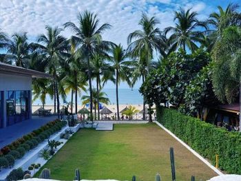 Это очень и очень старый отель. Мы выбрали виллу с видом на море, она стоит дороже, чем номер в именном пятизвездочном хорошем отеле. Что мы получили? Вид на детскую площадку и кое-где проглядывалось море из-за пальм. Ночью были дожди и в нашей комнате начало сильно протекать окно и крыша, залило всю комнату. Это аварийное жилье. Завтрак очень скудный, на отель 3 звезды, невкусный. Бассейн очень маленький, лежаков не хватает, плитка отвалилась и кругом обвязана лента, чтоб не выходить за ее пределы. Также есть перерыв в работе бассейна: с 13-15 часов он закрыт. Отель расположен в такой бухте, где постоянные волны и запрещено купаться, за 5 дней, только 2 можно было зайти в воду и то на ограниченном буйками куске, как в загоне. К тому же на пляж приходят китайцы, которые загорают голыми, мне с детьми на это было неприятно смотреть. Персонал отеля не говорит ни по-английски, ни по-русски, что усложняло коммуникацию. Никогда никому не посоветую этот отель. Он не должен стоить таких денег и ему требуется срочный ремонт. Отелю больше 20 лет.