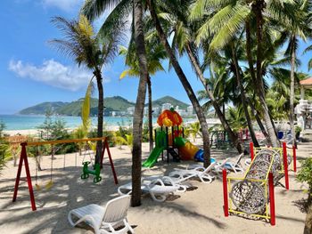 На пляже шезлонги есть, позагорали совсем немного и нас покусали песчаные блохи. Значит, территория совсем не обрабатывается.