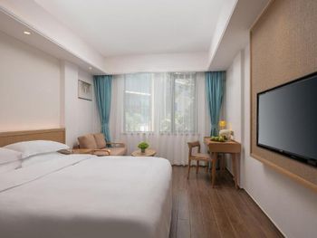 Номера совсем не убирали, пока их не вымоляли убираться и обновить полотенца, из-за того что грязно, очень много тараканов в номере. Букинг подвёл с завтраком, пришлось доплачивала отдельно огоромную сумму за завтраки на троих. Лучше бронировать через китайские приложения, намного дешевле! Завтраки однообразные, много свинины, не могла ничего практически есть, в беспошлинный магазин не отвозят бесплатно.