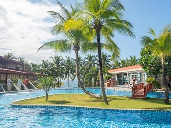 Очень утомленный отель, виллы то ли в плесени то ли в грибке на фото вилно Бассейн маленький и так себе Питание на тройку