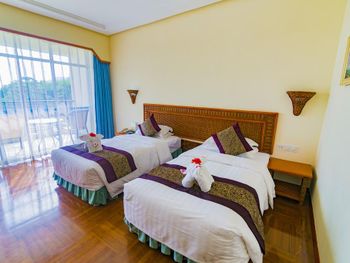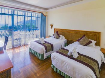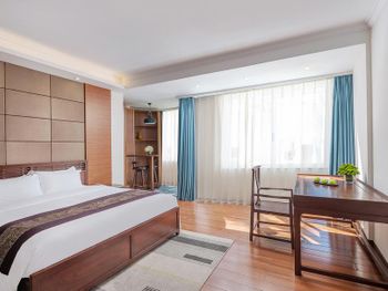 Номера совсем не убирали, пока их не вымоляли убираться и обновить полотенца, из-за того что грязно, очень много тараканов в номере. Букинг подвёл с завтраком, пришлось доплачивала отдельно огоромную сумму за завтраки на троих. Лучше бронировать через китайские приложения, намного дешевле! Завтраки однообразные, много свинины, не могла ничего практически есть, в беспошлинный магазин не отвозят бесплатно.