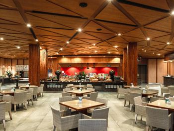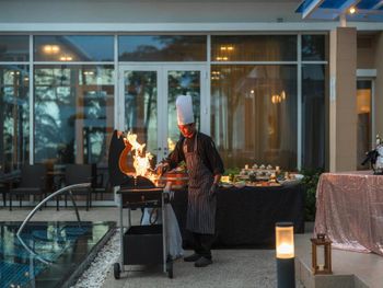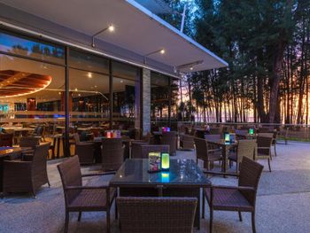 На территории работают 8 ресторанов и кафе, где готовят блюда тайской и интернациональной кухни. Гостям также подают напитки и легкие закуски.