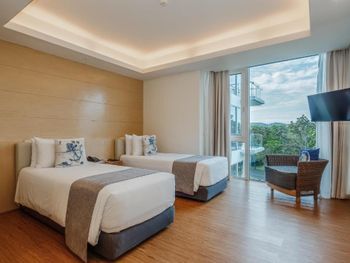 Отель абсолютно не соответствует уровню 5 звезд. Правильнее обозначить - это 3*, но с большой территорией. Мы часто и много с женой путешествуем, такого отвратительного номера для 5-ти звездочной гостиницы мы не видели.... впрочем, будь это хостел, все равно плохо. вид из окна был на какие-то ужасные сараи. Конечно, нам не повезло с размещением, возможно, есть и другие номера в других корпусах. (Категория нашего номера была - Делюкс, не стандартный). Заселялись мы ночью, на ресепшене были еле разговаривающие на английском низко квалифицированные в гостиничной сфере сотрудники.