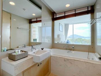 В одной из спален (жили в пентхаусе, 4 спальные) стоит старенький кондиционер Carrier. Настенный пульт был неисправен, кнопки вдавлены. Кондиционер на команды не реагировал, жил своей жизнью... Пришедшие техники ничего не сделали, ушли пообещав вернуться... Кнопочки в итоге на свой страх и риск разблокировал ниткой (благо сам 6 лет продавал ставил и обслуживал климатику), настроил, но даже на самом медленном режиме было шумно, а без кондёра беда. Потом из него потёк конденсат. Вызвали технарей ещё раз. Залезли, починили. Перестала уходить вода в другой спальной, пришли - прочистили слив. Война продолжалась четыре дня из четырнадцати, а ехали не воевать... Реновация судя по всему была давно, ещё при Centare (были в этом отеле в ноябре 2014 г.) Итерьер свежестью не отличается. На шторах в гостинной следы то ли краски, то ли шпатлёвки. Уборка в номере как правило ограничивалась сменой полотенец, мытьём посуды и заправкой кроватей. В бассейне на крыше, на десятый день зацвела вода, благо мы им уже не пользовались, море было относительно спокойным (в 2014 волной сбило китаянку, не волнуйтесь, вытащили и откачали). Мелочи конечно, но звёзд то ПЯТЬ! И стоит номер как ПЯТЬ! И сервиса хочется соответственного... В море периодически кусались какие то "насекомые", особенно ближе к вечеру, народ это не останавливает - всё же на море приехали, но и удовольствия не добавляет. "А в остальном прекрасная маркиза, всё хорошо..."