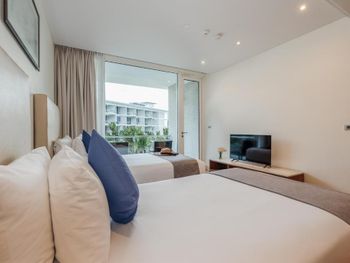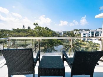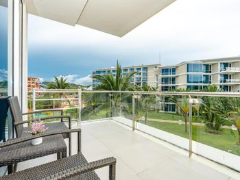 Арендовали люкс с гостиной, двумя спальнями и большим балконом. Рядом аквапарк, вход для постояльцев бесплатный. Недалеко пляж, где можно снимать взлет-посадку самолетов. Хорошее место.