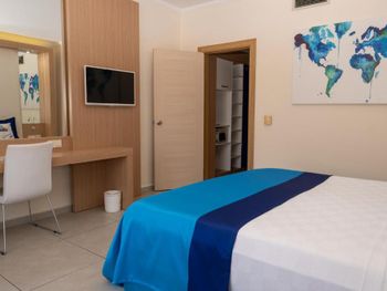 В AQI Pegasos World в номерах есть телевизор, письменный стол и собственная ванная комната, а также предоставляются постельное белье и полотенца. В распоряжении всех гостей мини-бар.