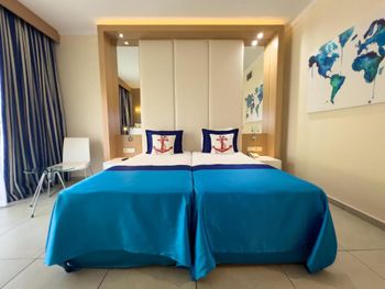 Платный wi-fi везде, кроме ресепшн. Удивлен, что в отеле все включено такое есть - портит все впечатление. Несоответствие стоимости, указанной при бронировании - указано 3 eur/сутки, фактически 9eur/сутки за интернет. Грязная посуда везде, столовые приборы в детском отделе сами протирали салфетками. Слышимость в номерах сильная, кто спит чутко до 00:30 забудьте про возможность уснуть - караоке и шоу вам это не позволят. Указано, что поздний завтрак до 10:30, фактически детский отдел уже закрыт в 10:10. Кофеманам будет тяжело - кофе ужасный. Включенная барная карта плоха.