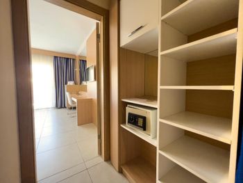Отель новый, но все какое-то дешевое и ненадежное. В номере пахло канализацией или затхлостью, обращались на ресепшн, как результат - один раз пришел работник и побрызгал освежителем воздуха. Вид из окна был бы терпимым, если бы помыли окно. Но его просто каждый раз завешивали шторкой. Подушки разорванные по шву. Все, что может быть платным - платное. Мороженое у бассейна, соки на завтрак, хороший кофе, интернет. На пляже два бара, в которых нет перекусов и крутиться два коктейля на выбор. Лежаки у бассейна расположены впритык друг к другу, никакого личного пространства. Но и найти свободный лежак у бассейна - задача со звездочкой.