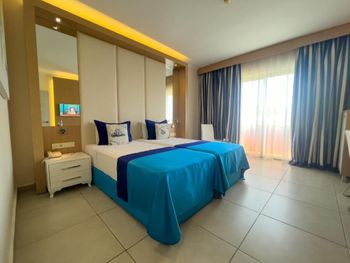 Большая территория, хороший аквапарк, первая линия. Детскую кровать предоставили. В минибар предложили литровые бутылки колы/фанты/спрайт. Очень хорошая детская анимация вечером, язык анимации только английский
