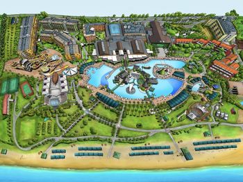 Шикарная территория! Очень чистая, ухоженная и невероятно красивая! Великолепные водные горки! Множество бассейнов по всей территории. Очень вежливый и обходительный персонал