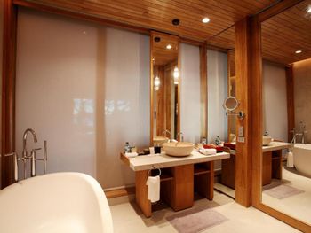 Стильные просторные виллы оснащены кондиционером. Через их большие стеклянные стены и с открытых веранд на солнечной стороне можно любоваться прекрасным видом на океан. В распоряжении гостей кофемашина эспрессо, телевизор с плоским экраном и iPod с музыкальной подборкой. Собственная ванная комната располагает ванной и феном.