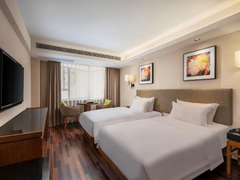 Меня вынудили оплатить проживание наличными юанями на ресепшен. Хотя у меня в руках была банковская карта европейского банка. Молодой человек на ресепшен сказал, что карта грязная. Видимо, имел в виду, раз я россиянка, то все карты под санкциями. Неприятно очень! Этот отель больше не выберу. Обычная четверка в центре города, в номерах чисто, уборка есть, различные мелочи типа пакетиков чая/ сахара, воду в бутылках, мыло по запросу приносят ежедневно и без напоминаний. Постельное белье белое. Номера совсем небольшие и тесные для троих. Завтраки не очень удачные, невозможно испортить овощи, брали их, также рисовые булочки и яичницу/ яйца. Ночью выключают лифты. Зачем? Чтобы создать проблему отдыхающему? Неудобно тащить свой чемодан с верхнего этажа по лестницам в 2 часа ночи.