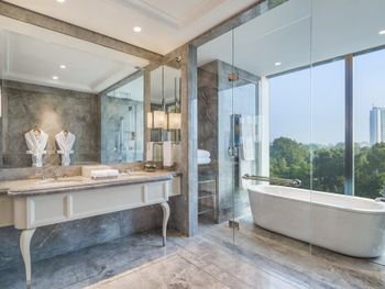 В распоряжении гостей отеля The St. Regis Kuala Lumpur все необходимое для комфортного проживания в номерах с французскими окнами и захватывающим видом на Парк Лейк Гарденс и городской пейзаж Куала-Лумпур. В числе удобств каждого номера просторный гостиный уголок и гардеробная с вместительным шкафом и местом для хранения багажа. В каждом номере есть туалетный столик с хорошим освещением. Также к услугам гостей рабочий стол с медиа-центром HDMI и международными розетками.