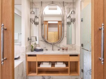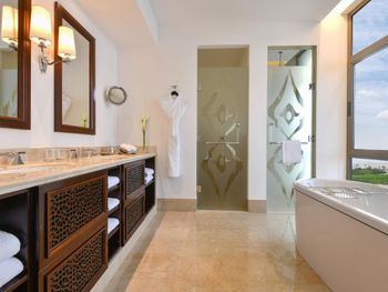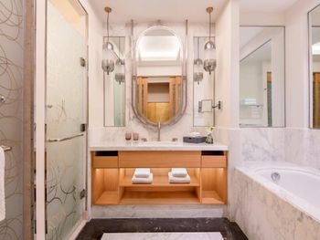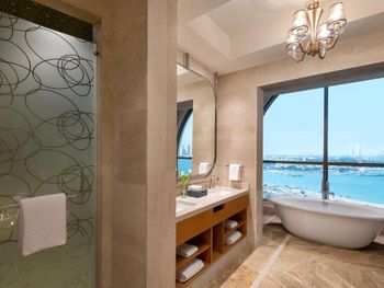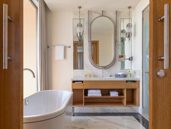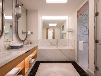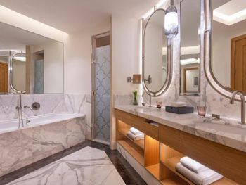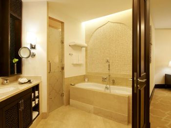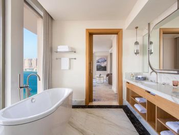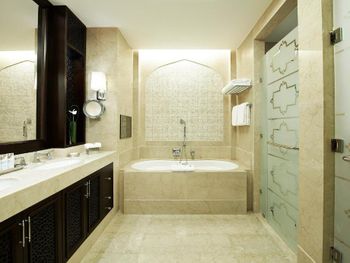 Просторные люксы отеля St. Regis Doha оформлены в современном стиле и оснащены телевизором с 42-дюймовым плоским экраном и док-станцией для iPod. Ванная комната с глубокой ванной и отдельным тропическим душем укомплектована туалетно-косметическими принадлежностями марки Remède.