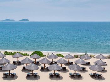 Кофе в отеле ужасный, горький и неприятный; прокуренный номер, хотя стоит табличка «не курить»; на завтраках нет салфеток, чтобы положить на колени; лежаки везде без матрасов, потом болит спина и голова; завтраки однотипные и быстро надоедают; номер убирают один раз в день; многие сотрудники совсем не понимают по-английски, совершенно простые вещи нельзя попросить или объяснить - например, такси в город Санья, уже ступор и полное непонимание; на пляже у моря буквально 4 лежака, заход в море каменистый и неудобный; в баре где лобби дорогие цены, брали кофе - дорого и опять же очень невкусно