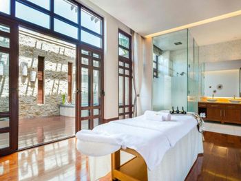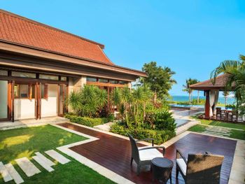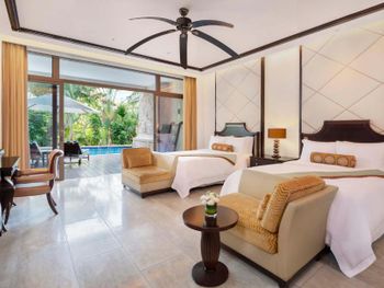 Шикарная вилла с двумя спальнями и своим бассейном и шикарным видом на море. Прекрасно было все. Умные унитазы, мраморные полы и столешницы, тяжелая деревянная мебель, огромные комфортные кровати, отличная система кондиционирования, на каждое помещение своё управление температурой. Кухня, столовая, гостиная, три телевизора, Батлер круглосуточно на связи по всем вопросам. Багги возят жителей вилл по территории. Прекрасный китайский массаж в СПА.