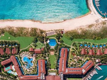 Неоправданно дорогая еда в ресторанах, ели по несколько раз во всех, единичные блюда можно назвать вкусными. Несколько дней немного были волны на море и было невозможно купаться из-за мусора и водорослей. Пляж убирают плохо, нельзя так в отеле такого уровня.