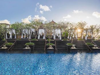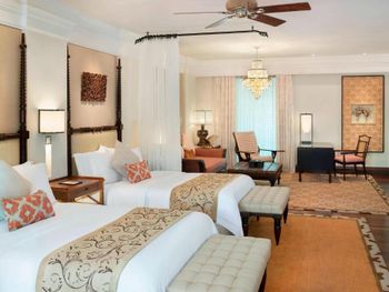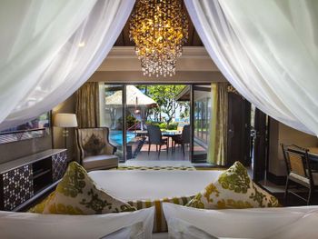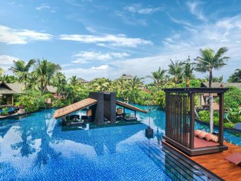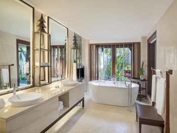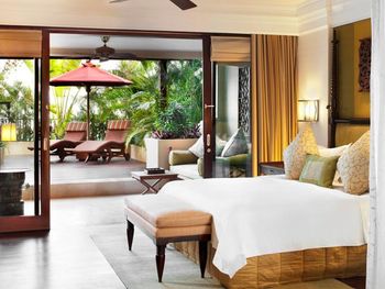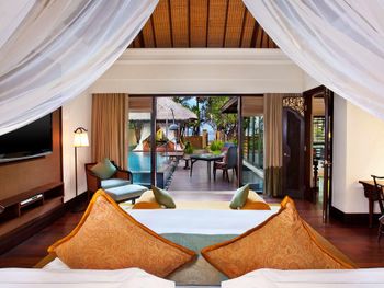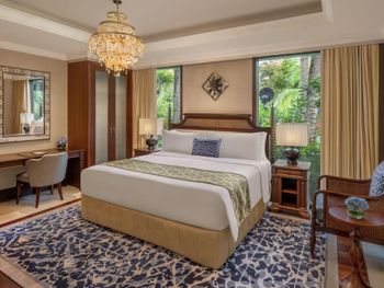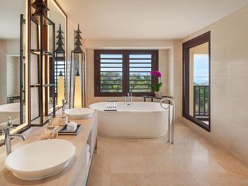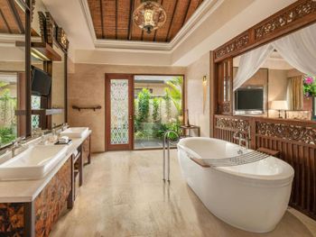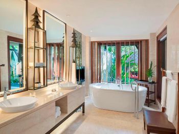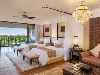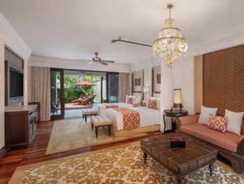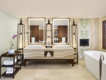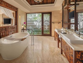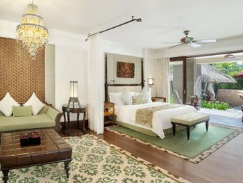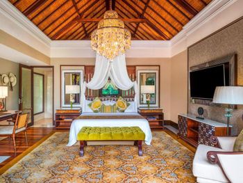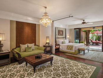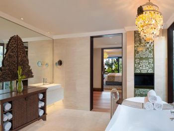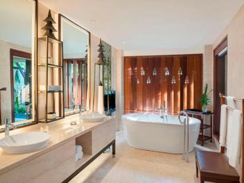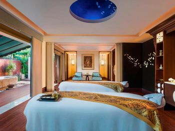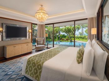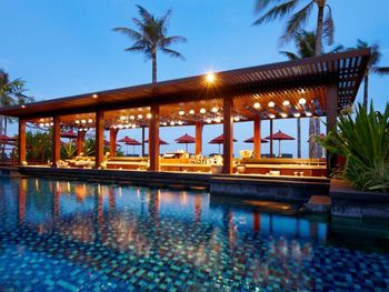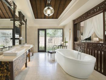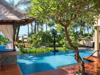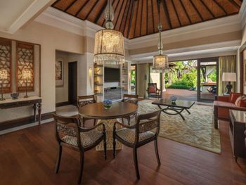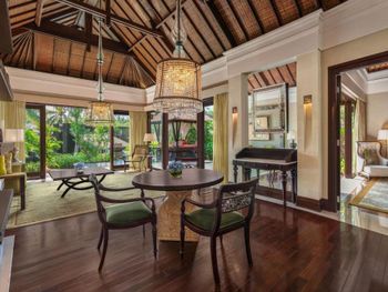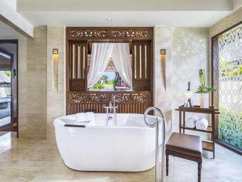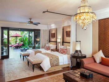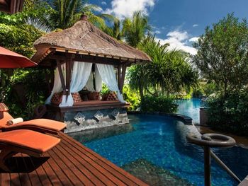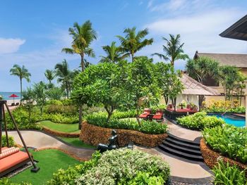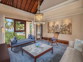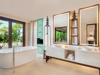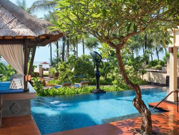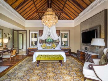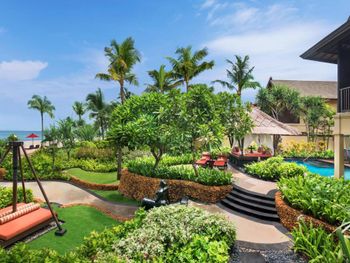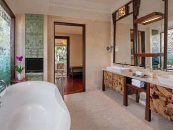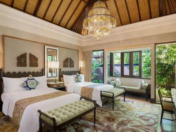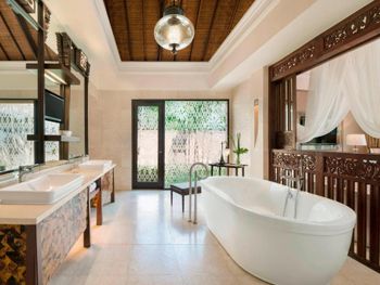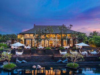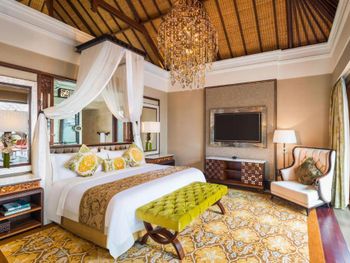Курортный отель St. Regis Bali Resort с балайским садом — пляжный оазис роскоши на чистейших песках Нуса-Дуа. Всего в 25 минутах езды от международного аэропорта Нгурах-Рай в курортном отеле гостей ждет вневременное уединение в окружении природной красоты острова. К услугам гостей просторные люксы и виллы в элегантном стиле с современными удобствами и видом на пышный сад или океан. Во многих из них есть собственный бассейн и прямой выход к пляжу.