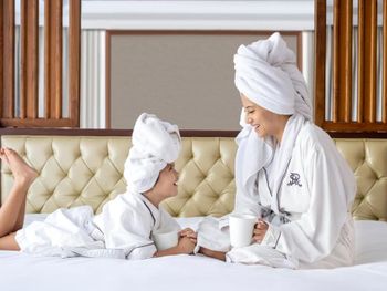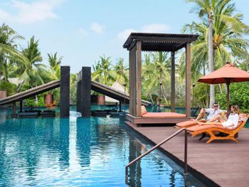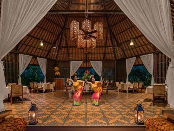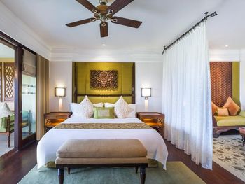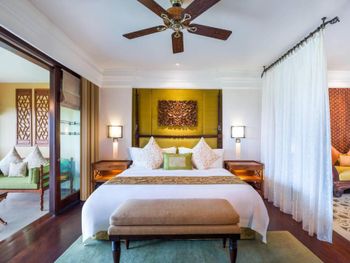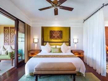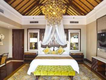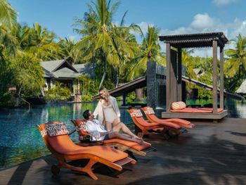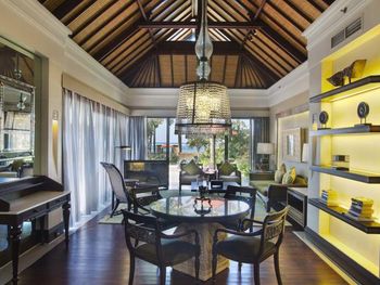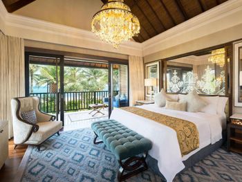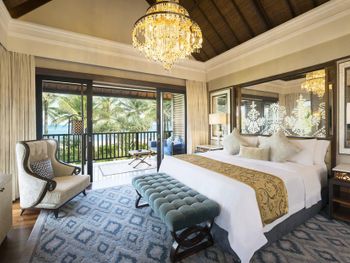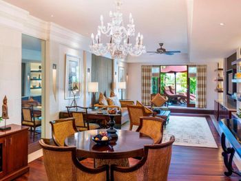 Потрясающий отель. Выбирала по отзывам и впервые реальность превзошла все ожидания. Мы сделали апгрейд до Lagoon виллы - огромный номер, отдельная большая гостиная, две ванных, кухонка, даже комната для прислуги. Очень удобно, что есть выход в огромный бассейн с морской водой, он неглубокий (1.43м), так что для моей пожилой мамы было очень удобно. У меня нет большого опыта проживания на виллах в 5* отелях, может быть, сервис такой и должен быть, но я просто не могу передать словами, как все было круто - батлер по первому звонку приносил капучино на виллу, мгновенно приезжали баги, бронировали ребенку йогу на утро, утром будили звонком и тут же приносили завтрак с пылу с жару, чтобы успела подкрепиться до занятия. Каждый день были маленькие подарки от отеля - то аромат для интерьера, то тарелка экзотических фруктов (которые батлер тут же готов почистить), то набор сдобных мишек. А в день отъезда вообще подарили две расписанные вручную пляжные сумки и плюшевого медведя, так трогательно было. В начале нашего отпуска на соседнюю виллу заехало шумное семейство, я попросила нас переселить в более спокойное место - без лишних вопросов, даже бровью не повели, тут же предложили double bedroom виллу (выше классом, чем у нас была), куда мы в тот же день после обеда и переехали. Нам троим там просто можно было потеряться))). Ходили в SPA почти каждый день и это было потрясающе - дизайн, музыка, ароматы, тишина, ну и конечно высококлассные специалисты. Очень были впечатлены сервисом на пляже - тут же подбегают, все организовывают, приносят прохладные салфетки, воду, периодически какие-то маленькие закуски бесплатно разносят. Про завтраки говорить не буду, но отдельно хотела бы порекомендовать ужин в ресторане Dulang - он входит в стоимость если у вас проживание с ужином, сет-меню от шефа с блюдами национальной кухни, каждой гостье предлагают выбрать в подарок веер ручной работы, во время ужина небольшое представление с национальными танцами, очень колоритно.
