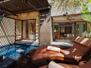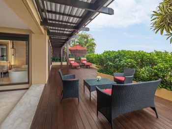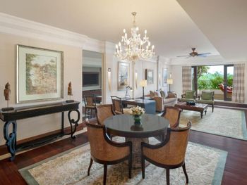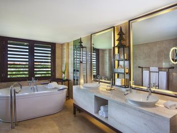 Увы, но отель давно требует ремонта!!! Те стандарты "непревзойденной роскоши и элитности, заложенные в концепцию данной марки отелей её основателем", о которых пишут в интернете в этом отеле похоже остались в прошлом, а сейчас качество отделки, техническое оснащение и убранство номеров на уровне турецкой 4*. Возможно виллы внутри выглядят лучше, но не думаю, что это сильно что-то меняет, особенно в соотношении цена-качество! Шумоизоляция никакая! Даже шаги персонала в коридоре отчетливо слышны в номере, как и беготня ребенка из номера выше. Передвижение мебели, работа пылесоса и разговоры опять же персонала также слышны отлично. Как писал выше питание понравилось качеством приготовления и качеством продуктов, но все две недели одно и тоже меню! Заказываешь как бы "а ля карт", но из одного и того же перечня на дюжину блюд! На территории много дополнительного персонала, занимающегося мелким ремонтом, пересадкой кустов и другими хозяйственными делами! Заходишь в бассейн, а там 6-8 человек в рабочей одежде "что-то делают"! Сильно бросается в глаза при условии, что самих отдыхающих было немного (или не видно)! Электрокары! Постоянно ездят по и не так широким дорожкам! Да, конечно они вежливо еле еле едут сзади и не требуют приоритета, но также неприятно, когда у тебя сзади крадется машина!