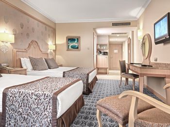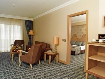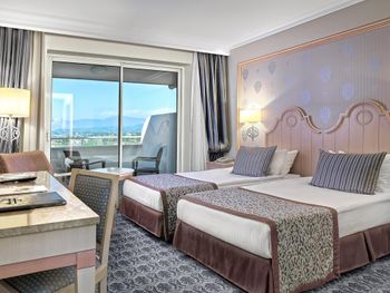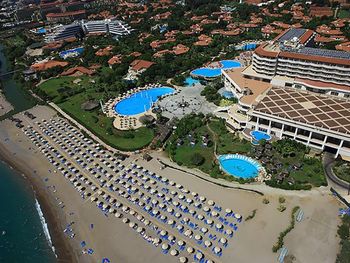 Не понравилась еда. Да - как и во всех 5-и звёздочных гостиницах, еды много, но которую кушать с удовольствием - такой очень мало :( Блюда, наверное, всё таки больше турецкой кухни, чем европейской. Изобилие мясных блюд большое, но съедобного мало. Вроде, казалось бы, и утка, и баранина, но приготовлено так, что удовольствия не получаешь. Были в середине октября, но выбор фруктов был не большой... Ещё - цены на экскурсии в этой гостинице x2!!! Поехали на рафтинг, и там, пообщаясь с людьми из других гостиниц, поняли, что нас обобрали! Мы были единственные, кто платил такую цену.