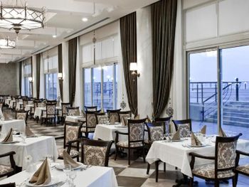 Не понравилась еда. Да - как и во всех 5-и звёздочных гостиницах, еды много, но которую кушать с удовольствием - такой очень мало :( Блюда, наверное, всё таки больше турецкой кухни, чем европейской. Изобилие мясных блюд большое, но съедобного мало. Вроде, казалось бы, и утка, и баранина, но приготовлено так, что удовольствия не получаешь. Были в середине октября, но выбор фруктов был не большой... Ещё - цены на экскурсии в этой гостинице x2!!! Поехали на рафтинг, и там, пообщаясь с людьми из других гостиниц, поняли, что нас обобрали! Мы были единственные, кто платил такую цену.