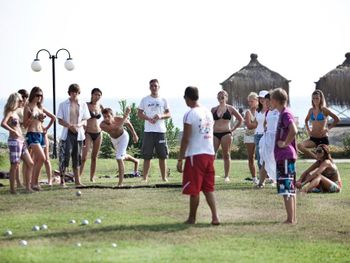 Территория большая с великолепной растительностью. Первая линия. Персонала много, работают добросовестно. Еды много, развлечений для всех хватает, праздники для детей устраивают. Проблем с переводом нет.
