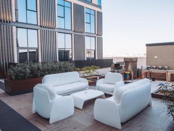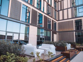 Гости апарт-отеля Staybridge Suites Dubai Al-Maktoum могут отдохнуть на террасе для загара.