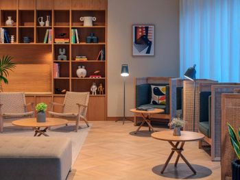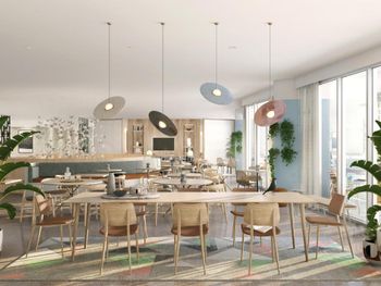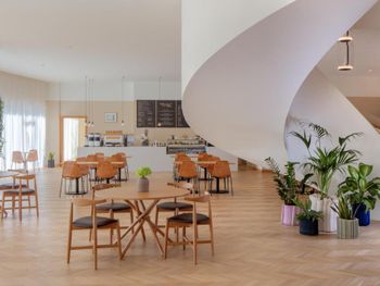 На 1 этаже здания открыто современное кафе и закусочная, где можно попробовать фирменные блюда и напитки со всего мира. Гости могут расположиться в уютных общих зонах, таких как The Den и Living Room. Бесплатный завтрак сервируется на 2 этаже. Для удобства гостей осуществляется доставка еды и напитков.