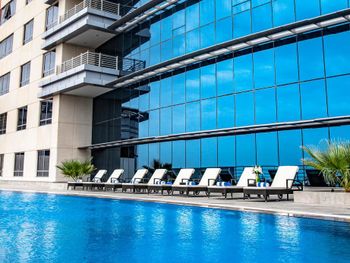 Отличный отель,большие комнаты.Бассейн и завьрак понравились. Район одни офисы,мне больше нравится Марина.Диван для детей двух детей до 10 лет максимум.Шум от метро и с дороги.