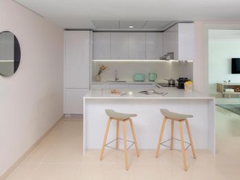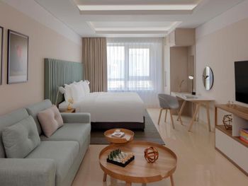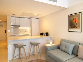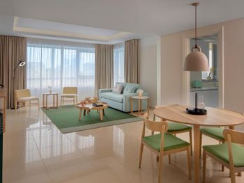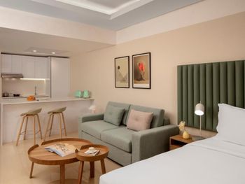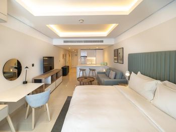Расположенные на 15 этажах номера-студии и люксы с 1 и 2 спальнями отличаются современным дизайном интерьера, а также просторными планировочными решениями с обилием света. Во многих люксах есть собственный балкон, с которого открывается захватывающий панорамный вид на город или море. В каждом номере в распоряжении гостей собственная полностью оборудованная кухня, а смежные люксы отлично подходят для семей или небольших групп, путешествующих вместе.