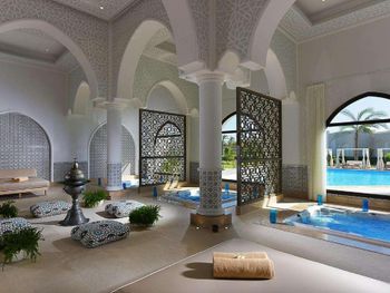 Еда отвратительная. Вас ждут недосуши с крабовыми палками, бумажная ветчина, жидкие каши с тонной сахара, плохое мясо, какую-то рыбу покрывают сыром. Морепродуктов нет. Бледная креветка на шпажке, микро краб в количестве трех штук на витрине. Какие-то пластмассовые закуски причудливо замаскированные под деликатесы. Просто хрючево пирамидами. Выстраивают пирамиды с салатами "с креветками"- а они из банки размером с семечки и выложены сверху. Не ждите ничего путного и в ресторанах на территории. Пицца с ужасным сыром, маринованный лосось. Подушки в номере перьевые, прям спать неприятно, это не гигиенично даже дома, не то что в отеле. Что-то покусало шею. Просите двойные наволочки. Спа- Юми хороший мастер. На ресепшене спа типичный обидчивый араб, на вопросы о косметике очень злобствовал. Еще и хотел обмануть- купил банку крема, протягивает пустой платежный бланк с просьбой подписать))) это чтоб потом нарисовать удобную ему сумму. Попросил так не делать. Разозлился. Вода в море ледяная. Риф пустой. Спасатели открывают в 9 пирс еще и опаздывают. Надо рыб хоть подкармливать что ли, чтоб там хоть кто-то кроме толстолобиков пасся. На ширину всего пляжа, на который открывался вид с бассейна возвели монструозный ангар. Вы не увидите море из кластера 3 (номера начинаются на цифру 3). Это всё безумие.