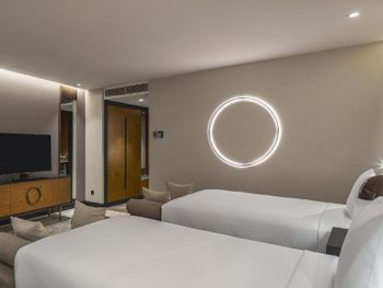 Для меня важнее всего комфортный сон. А это - тишина и удобная постель. Матрас и подушки неудобные. Окна пропускают шум с улицы. Кондиционер гудит. Выключить его нельзя, т к он отапливает помещение. Завтрак скудный и невкусный. Ходишь с тарелкой и положить нечего. Хотела взять омлет, но девушка, которая жарит, льет пол сковородки масла и не вытирает ее после предыдущего заказа. Зато играет арфистка. То есть тратятся на красивую картинку, а не на то, что реально нужно гостям. Мне дизайн не нужен, если спать некомфортно. И до аэропорта 40 минут. Далековато, если это ночевка ради пересадки.