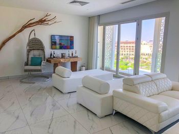 отель очень спокойный и комфортный. Больше всего понравилось, что не было толп людей как в других отелях. Большую территорию отеля занимает поле для гольфа. Сертифицированные игроки могут играть бесплатно хоть весь день. для новичков есть один бесплатный урок. Пляж небольшой, но его было достаточно. Постоянно ходят ребята, разносят напитки. Персонал замечательный, особенно помня другие поездки в Египет. Еда в основном ресторане неплохо, всегда было что-то вкусное, еда в ресторанах аля карт намного лучше, стоить бронировать все рестораны сразу по приезду. В домике с гольф люксами на первом этаже бильярд. Из алкоголя можно пить только пиво бутылочное Хайнекен.