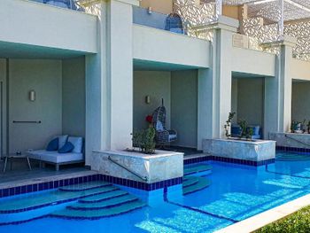 Коктейли делают не плохие, пиво холодное в наличии тоже имеется. На пляже отдельная зона, причём не плохая. В отличии от соседнего основного отеля в этой стороне пляжа море глубже, можно нормально поплавать прям с берега. Официанты внимательные, улыбчивые. Номера в отеле хорошие новые, с джакузи, или с выходом в бассейн.