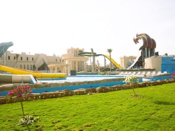 У отеля огромная ухоженная зеленая территория. Некоторые пишут, что отель на отдалении от Хургады и прогуляться негде - отчасти это правда. Но это Macadi Bay - он весь в получасе езды от Хургады. Но прогуляться есть где - по береговой линии можно гулять часами, она общая у всех пляжей, но будьте внимательны - закрывается после 18.00 из соображений безопасности.