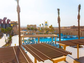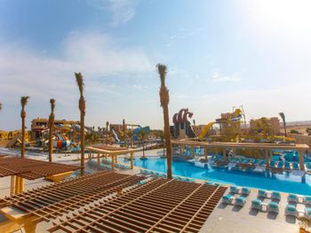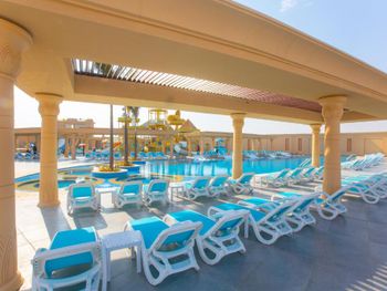 В столовой (иначе не назовешь) еды много, но она однообразная и не вкусная. BBQ на ужин все сгоревшее, есть нельзя. В столовой очень шумно и часто не хватает мест. Напомнил профсоюзный санаторий 70-х годов в СССР. У бассейна лежаков не хватает никогда! Резервировать их нельзя для иностранцев, арабам можно. Если займете шизлонг, зарезервированный местным туристом, то пул-менеджер попытается вас грубо согнать с него. Своей грубостью отличается Haitham Tawab. Этот точно вам скажет убирайтесь отсюда, т.к. наши туристы из Египта забронировали шизлонг еще до завтрака и на весь день. Наши доводы не принимались, разговаривал он грубо и постоянно жестами указывал куда-то вдаль, мол убирайтесь отсюда. Разумеется послали и его и претендента на шизлонг. Был конфликт, испорченное настроение на весь день. Позвали "топ-менеджера" с ресэпшн, то разобрался в течении нескольких минут, и извинился. НЕ посещайте рестораны аля-карт. Там делать совершенно нечего, еда хуже чем в столовой. Были в "индийском", который никакого отношения к индийской кухне не имеет. От Хургады далеко, около 37 км. На такси дорого. Больше в этот отель не приеду. НЕ ПОНРАВИЛОСЬ, с радостью уехал оттуда.