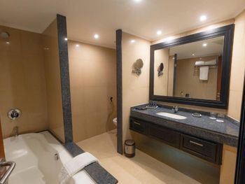 Мы остались в легком недоумении от восторженных отзывов. Отель будто законсервировали в 2000-х. Сильно потрепанный и концептуально устаревший интерьер. Некомфортная полутемнота везде, нет чувства свежести и уж точно ощущения 5 звезд.