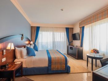 Нам дали хороший номер с видом на море-отлично.Уборка каждый день,но полотенце,халат не в упаковках. Отзывчивый персонал,особенно менеджеры. Красивая,ухоженная территория,хоть и очень маленькая.Красивый интерьер главного здания.В зоне «пляжа» вежливый,приятный официант,который действительно работает с душой.