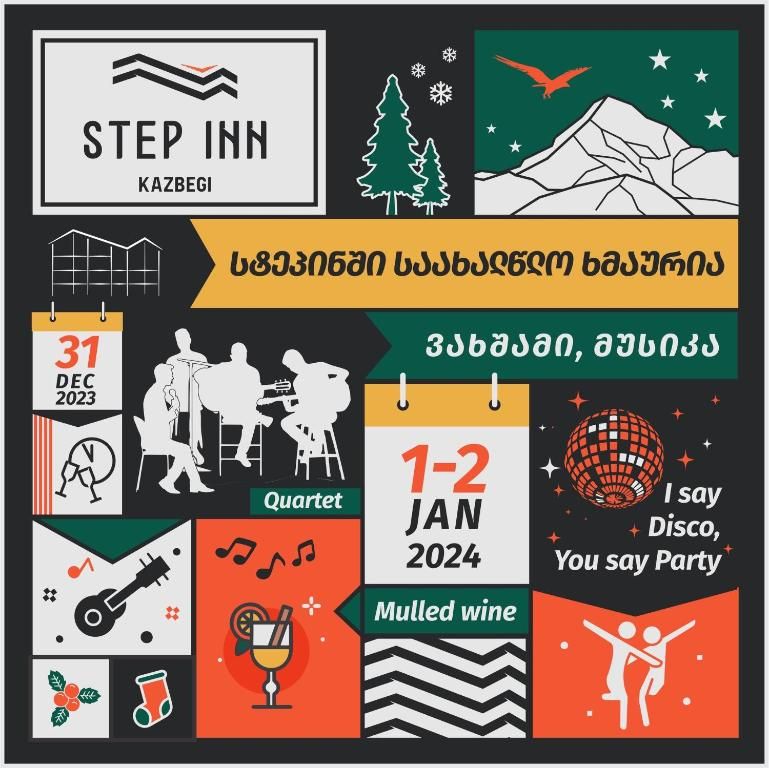 Step Inn - Kazbegi — это отель, расположенный в городе Степанцминда. К услугам гостей сад, терраса, ресторан и бар. Из окон отеля с 4 звездами открывается вид на горы. Гости могут воспользоваться крытым бассейном. Этот вариант размещения с гипоаллергенными номерами располагается в 48 км от следующей достопримечательности: Республиканский стадион «Спартак».