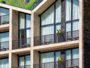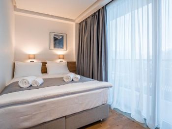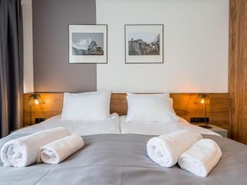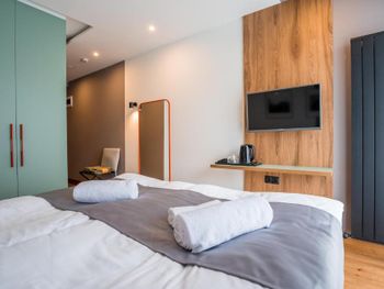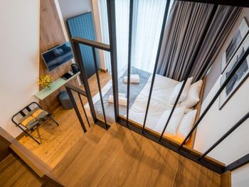 Комфортная постель, красивый оригинальный интерьер, чистота, возможный вид на горы (если бы не дома перед окнами), чистота. Сама гостиница симпатичная, интересный дизайн.