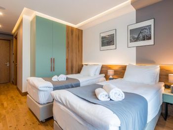 Стройка прямо перед отелем нарушает горную идиллию и немного портит вид. Строительный мусор вокруг, может не на территории, но не ясно. Холодный омлет по утрам. Заказывали номер с кроватью кингсайз, по факту сдвинутые кровати даже без объединяющего наматрасника. Также еле отрыли чемодан в номере, у нас он средний. Особенно были в шоке от сирены в 7 утра, после которой заснуть было невозможно.
