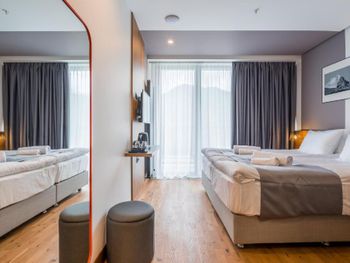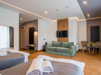 В целом было всё супер, но небольшая рекомендация: добавить пуфик в прихожую и коврик в гостиной зоне в семейных номерах, чтобы в зимнее время было теплее ногам