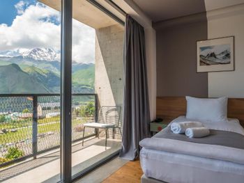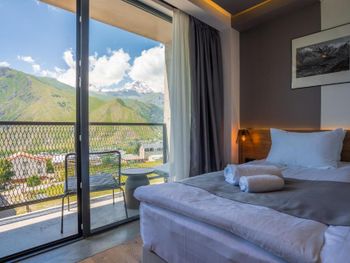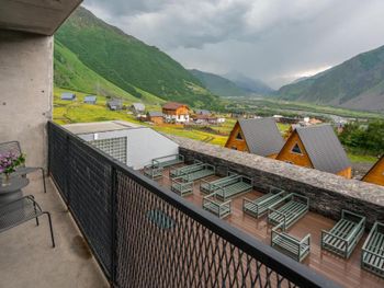 Заметно что за отелем стараются следить Оч понравился бассейн, несмотря на небольшой размер в зимнее время теплый бассейн оч кстати! Кровати комфортные, белье из хлопка(никакой излишней статики). Завтрак в ресторане выглядит оч симпатично и вкусно(к сожалению не успел попробовать). Со всех но кров прекрасный вид на Казбег