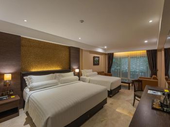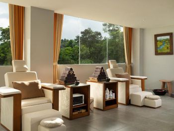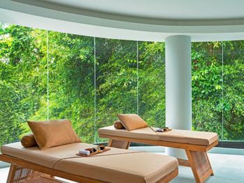 Мы брали делюкс на 5 этаже. И он был без окна. Точнее, в 50 см за окном была стена и мы смотрели в нее. Это жесть, если честно. Учитывая, что номер стоит более 100 $ сутки. Ощущение муравейника в отеле, нет атмосферы Бали и очарования Убуда. В округе много есть чудесных бутиковых отелей за эти же деньги с красивым видом из окна и шикарной территорией. Массаж нормальный, но вообще не уютные комнаты для массажа. А стоимость выше, чем в шикарном СПА