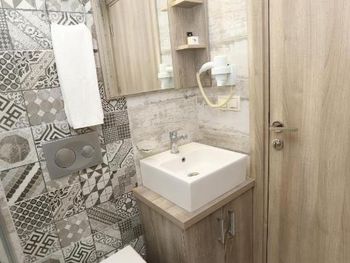 Было не много людей и нам бесплатно заменили номер на более комфортный. Всё остальное очень хорошо.Можно заказать завтрак. Завтрак очень хороший, а выпечка- просто свежейшая и тает во рту.